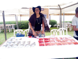 Je suis auteure du livre « L’or rouge, neuf mois comme neuf jours ». Je suis heureuse de participer à cette première édition de Festi-plumes. J’ai déjà une bonne impression concernant l’ouverture de Festi-plumes. Car de toute façon l’on ne commence jamais un projet facilement. Le plus important, c’est déjà de poser le premier pas. Et puis après forcement le reste suivra. Jusqu’à ce que le projet prenne de l’envergure.