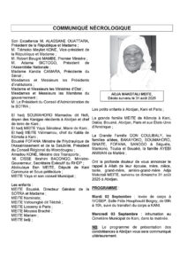 Communiqué : Le programme des obsèques de la Mère du DG de la SOTRA