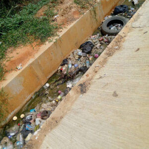 Ces caniveaux, faut-il  le savoir, sont remplis des tas d’immondices composés des bidons d’eau vides, des sachets de tout genre, des pneus usées, des bâches…